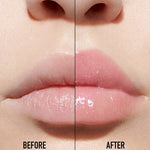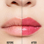 Hydrated for 24h** and enhanced with mirror shine, lips are visibly smoothed and plumper-looking.